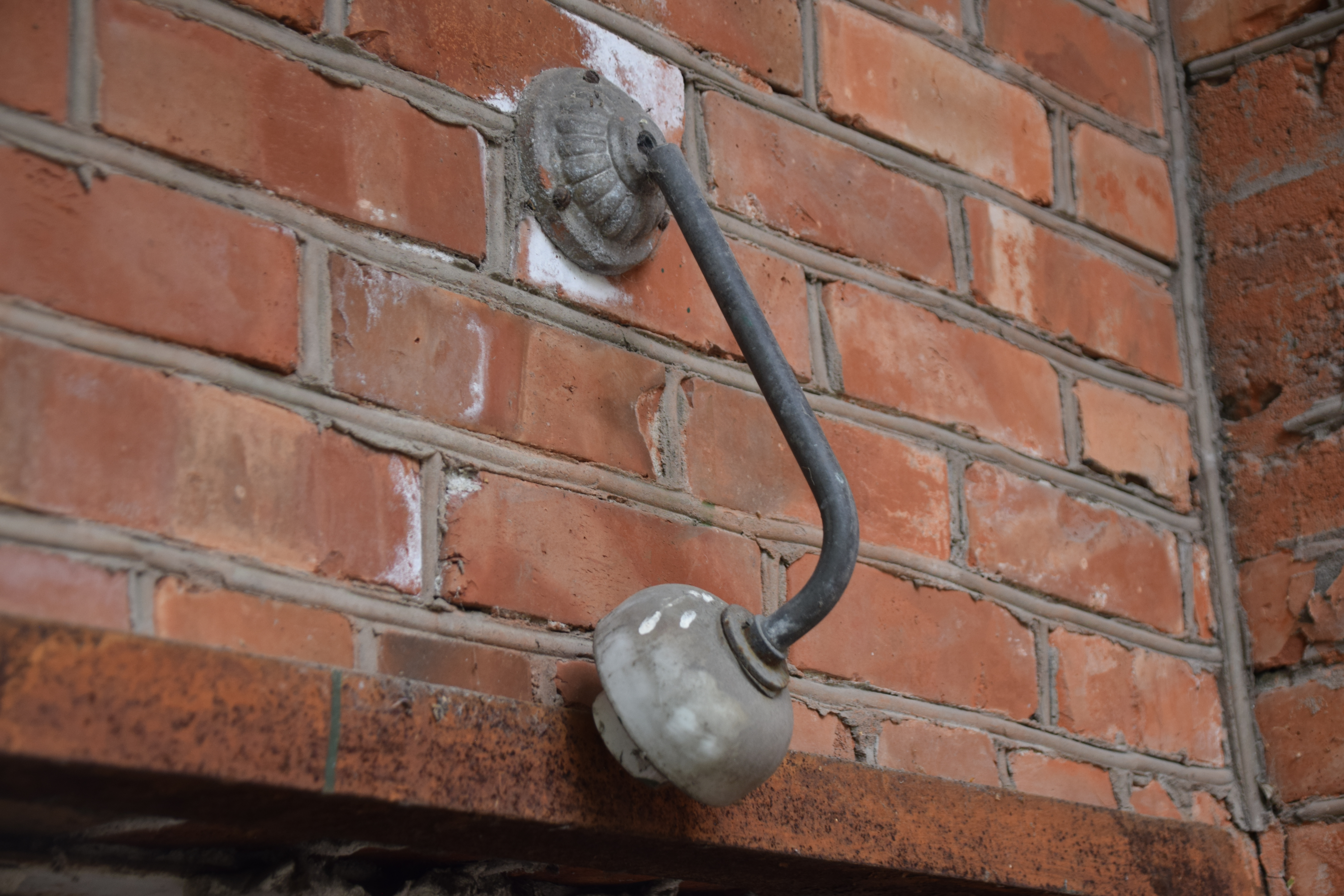 Det er lenge siden noen skiftet pære i denne utelampen. Driften opphørte på 1980-tallet etter at bedriften ble kjøpt opp av Furnes Jernstøperi. |